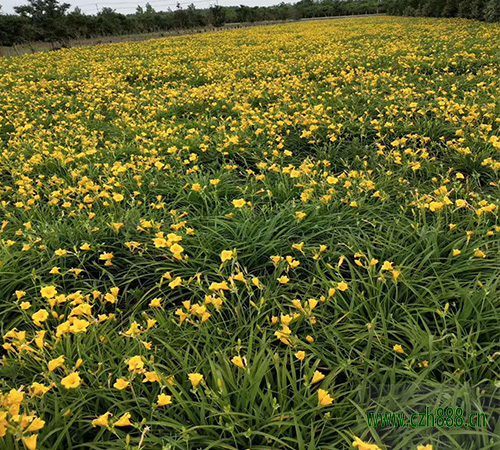 金娃娃萱草介紹: 金娃娃萱草(學(xué)名:Hemerocallis fulva ‘Golden Doll’):是萱草的人工栽培的園藝品種。地下具根狀莖和肉質(zhì)肥大的紡錘狀塊根。葉基生,條形,排成兩列,長(zhǎng)約25厘米,寬1厘米。株高30厘米,花莛粗壯,高約35厘米。螺旋狀聚傘花序,花7至10朵。花冠漏斗形,花徑約7至8厘米,金黃色。花期5至11月(6至7月為盛花期,8至11月為續(xù)花期),單花開放5至7天。 花期長(zhǎng),葉叢綠色期長(zhǎng),花徑大,單花時(shí)間長(zhǎng),株型矮壯。且早春葉片萌發(fā)早,翠綠葉叢甚為美觀。加之既耐熱又抗寒,適應(yīng)性強(qiáng),栽培管理簡(jiǎn)單,適宜在城市公園、廣場(chǎng)等綠地叢植點(diǎn)綴。 原產(chǎn)北美,適合在中國(guó)華北、華中、華東、東北等地園林綠地推廣種植。